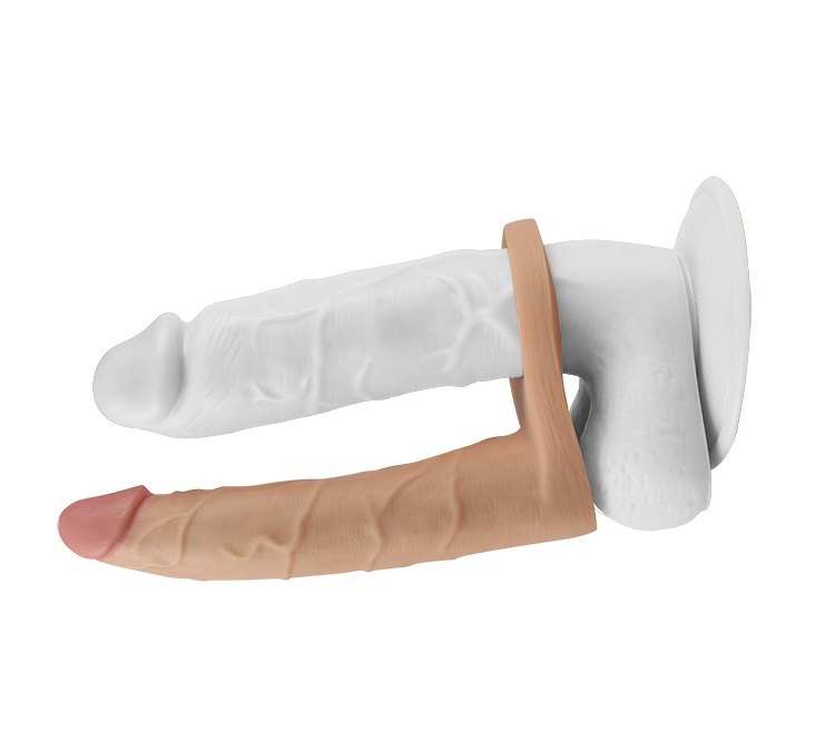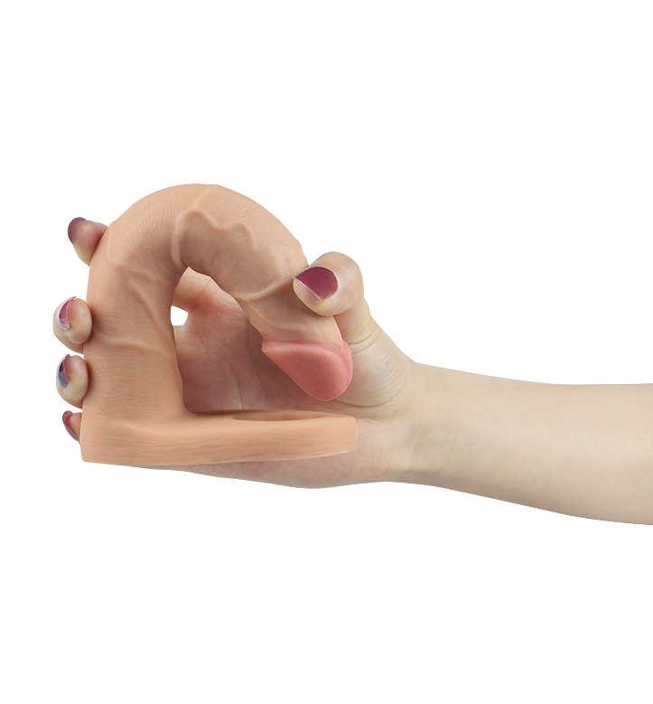 Strap On unisex Dildo Inclus Lovetoy The Ultra Soft Dublu cu Vibratii culoarea Pielii 17.8 cm