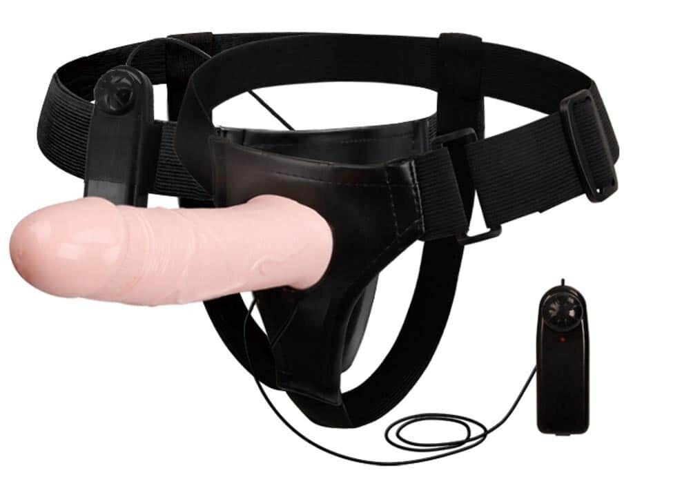 Strap On unisex Dildo Inclus Voluptas Hollow cu Vibratii culoarea Pielii 16.5 cm