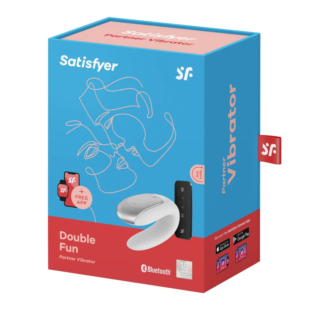 Vibrator Clitoris Double Fun stimulare punctul G, telecomanda, Aplicatie Telefon Satisfyer 4.2 grosime 9.3 cm lungime Alb